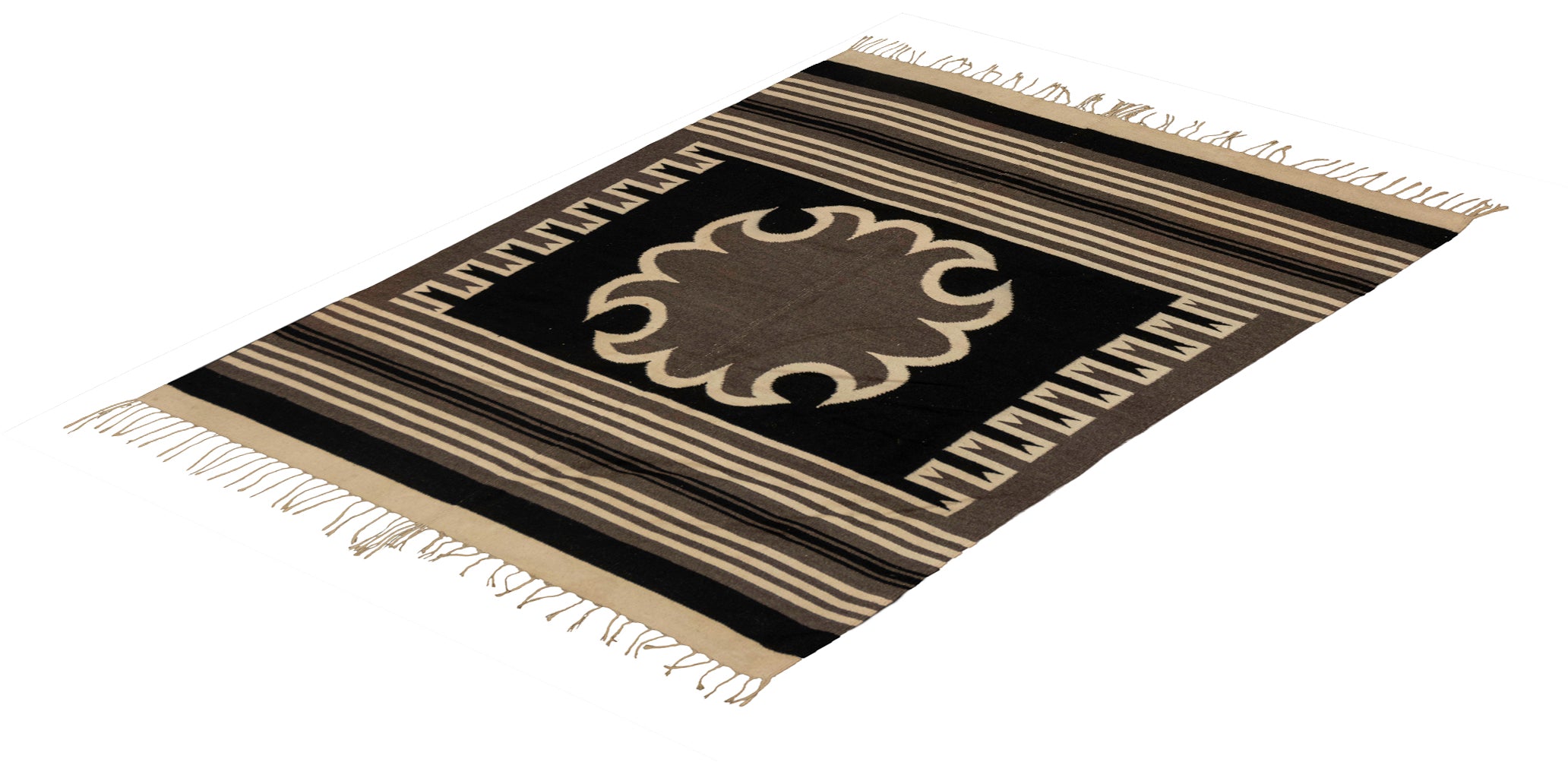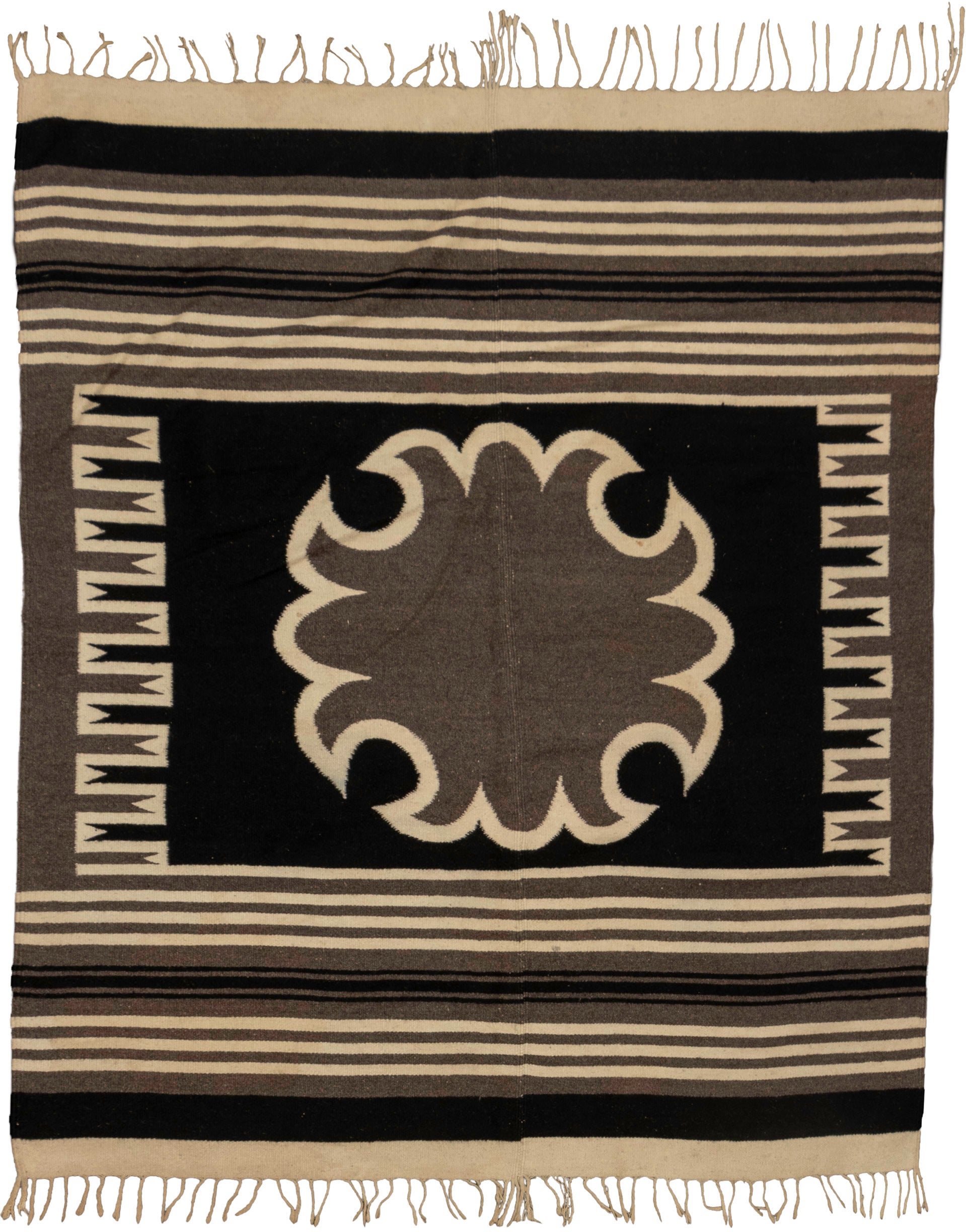 | Tags | 5x8, all-over, black, consignment, flatweave, geometric, ivory, Mexico, rectangle, rugs, Rugs for Sale, saturated, showroom, tribal, wool |