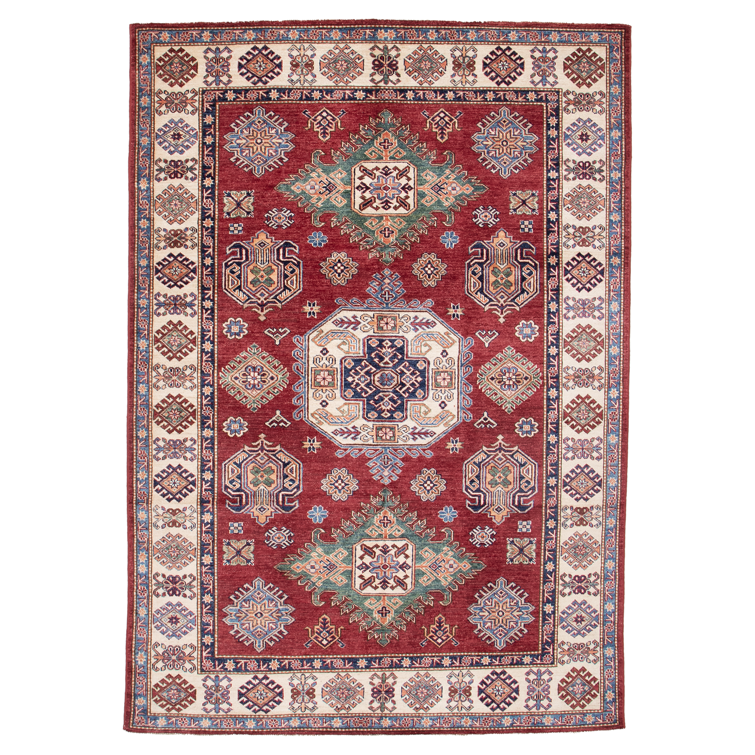 | Tags | 5x8, blue, geometric, gold, hand knotted, ivory, kazak, owned, Pakistan, rectangle, red, repeating motifs, rugs, Rugs for Sale, saturated, showroom, traditional, tribal, wool |