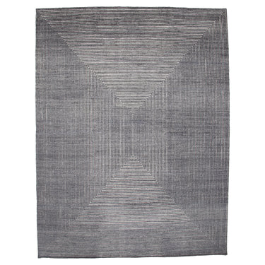 9' 1" x 10' 1" (09x10) Modern Grey/Ivory Wool Rug #018598