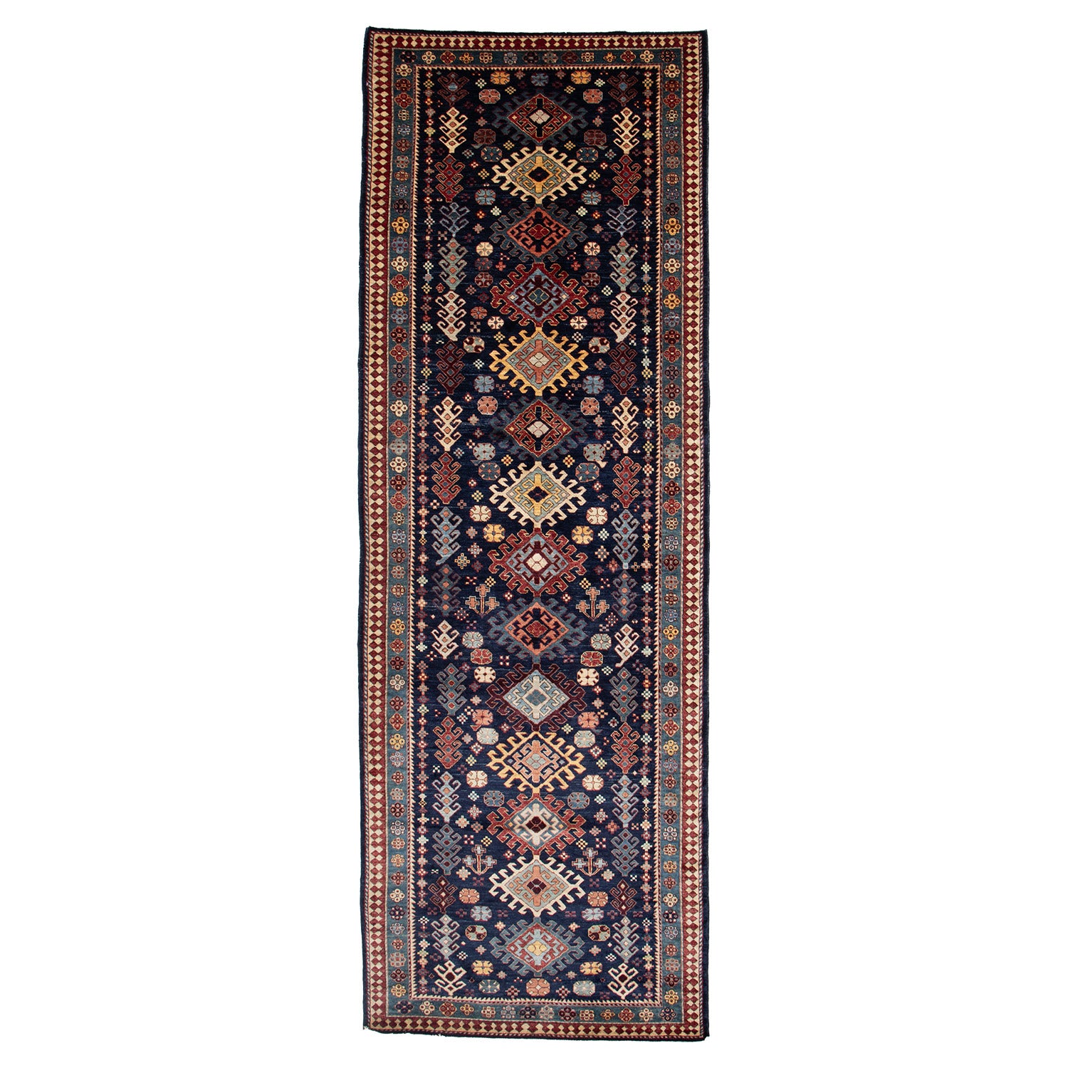 3' 11" x 11' 6" (04x12) Aqcha Gul Navy/Aqua Wool Runner #018530