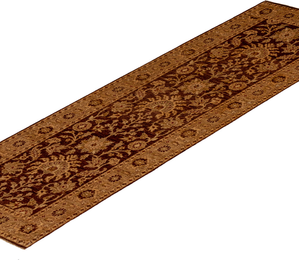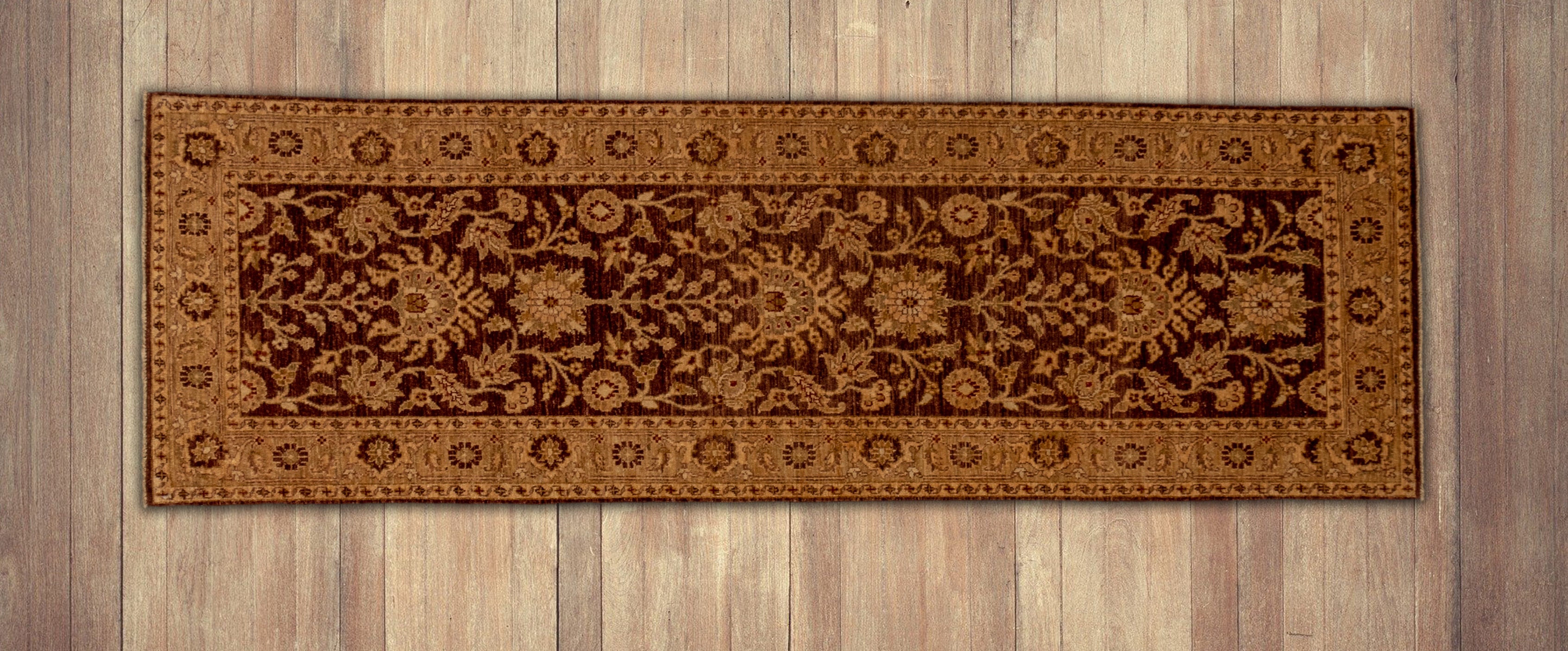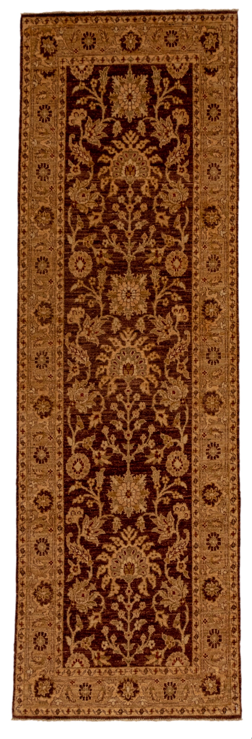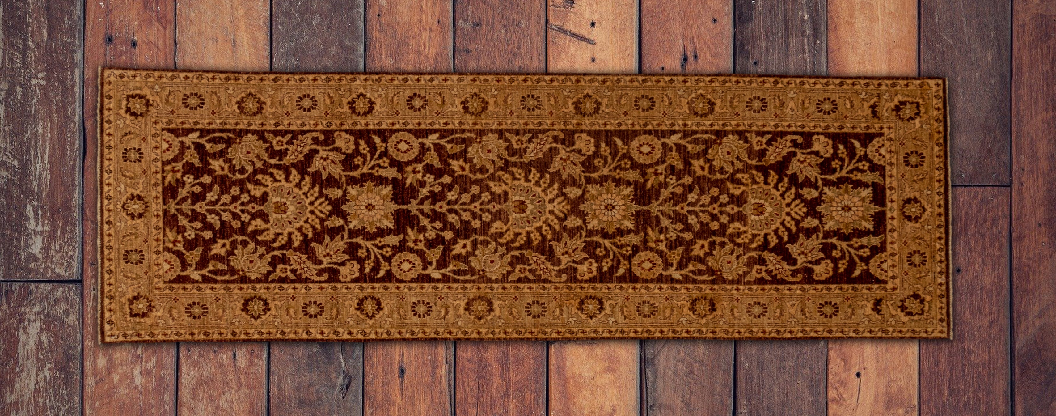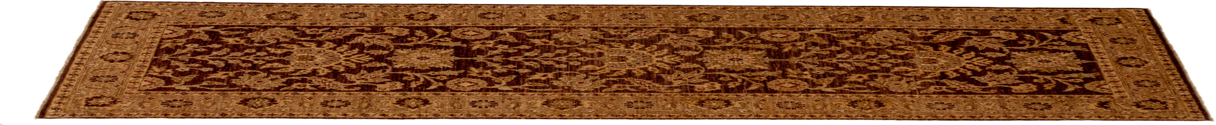 2' 7" x 8' 0" Hand Knotted Wool Chobi Brown Gold Runner Area Rug #003830