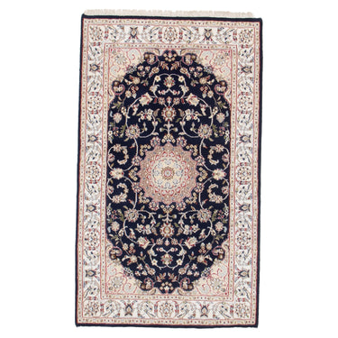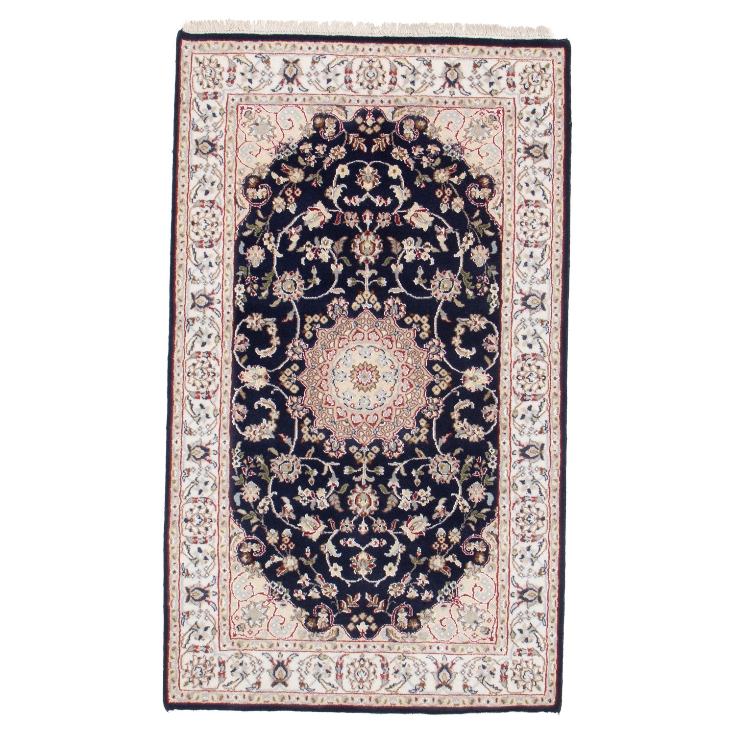 3' 1" x 5' 2" (03x05) Indo Nain Navy Blue/Ivory Wool Rug #018501
