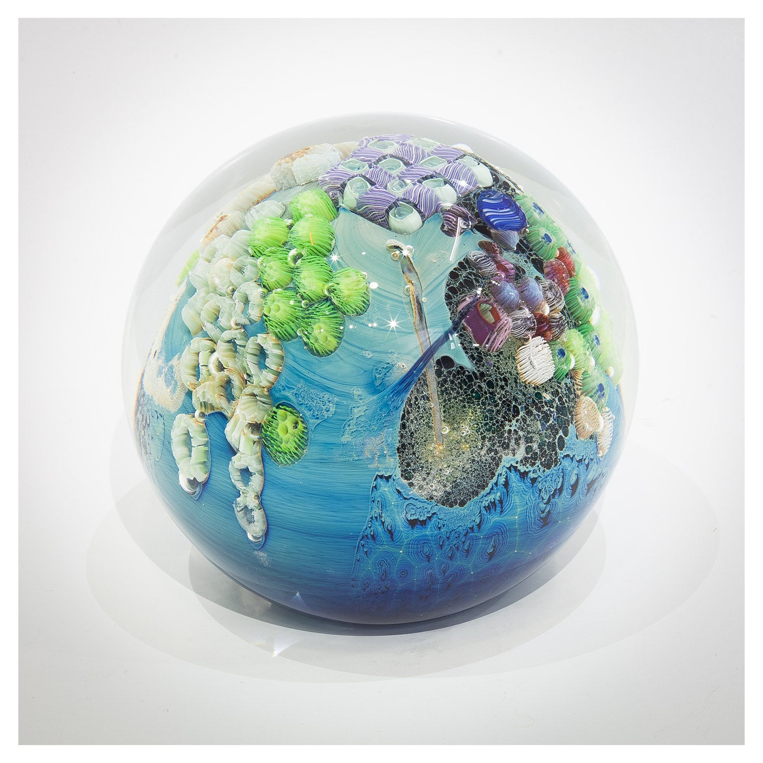 0' 6" x 0' 6" Blue New Mexico Glass Megaplanet - Signed "Josiah" #016583