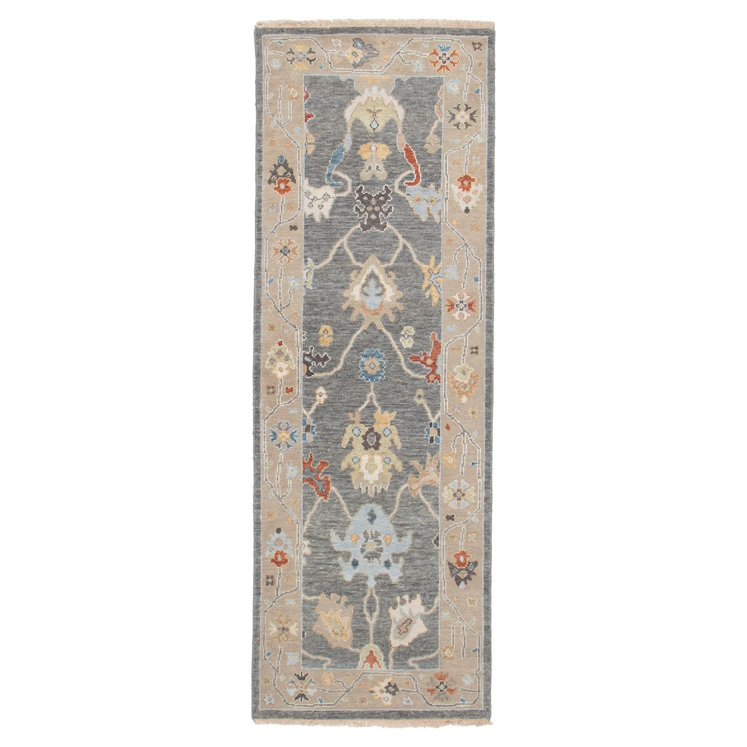 2' 8" x 7' 9" (03x08) Oushak Blue/Beige Wool Runner #018474