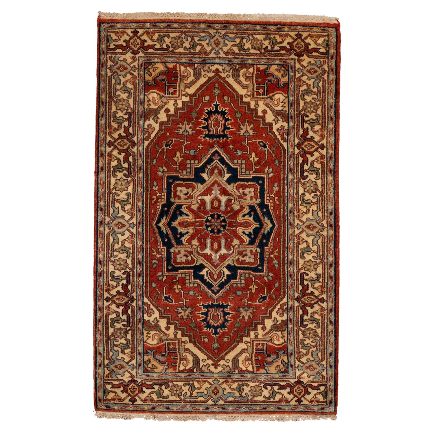 | Tags | 3x5, blue, Cotton, curvilinear, hand knotted, India, ivory, medallion, owned, rectangle, red, rugs, Rugs for Sale, Sarapi, saturated, serapi, showroom, traditional, wool |