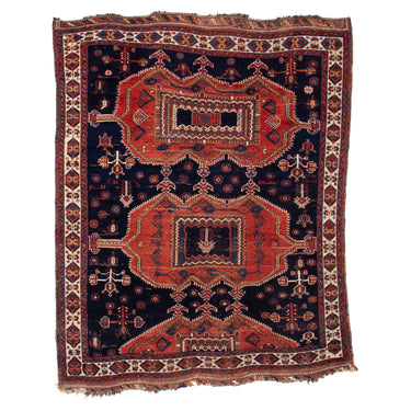 4' 10" x 6' 2" (05x06) Antique Shiraz Blue/Ivory Wool Rug #018497