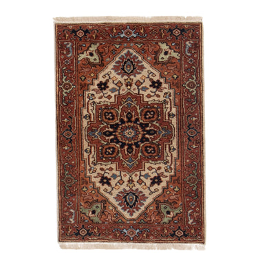 2' x 3' (02x03) Serapi Ivory/Rust Wool Rug #018438