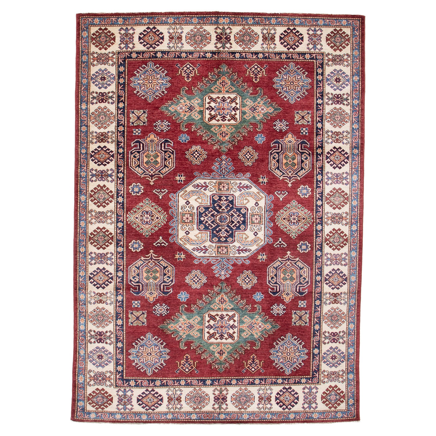 5' 5" x 7' 10" (05x08) Kazak Red/Ivory Wool Rug #018399